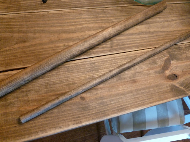 I hot glued those to the ends of the smaller dowel on the bottom of the map.